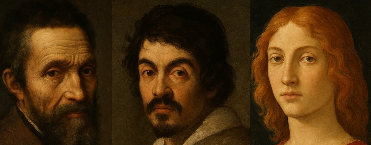 Minha jornada como pintor a óleo é profundamente influenciada pela rica tradição da arte italiana, especialmente pelos mestres renascentistas e barrocos Michelangelo, Caravaggio e Botticelli. Cada um desses artistas contribuiu para moldar minha abordagem à composição, uso da luz e expressão emocional.